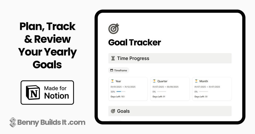 This goals template for Notion helps you set, track, and review yearly, quarterly, and monthly goals with clarity.
