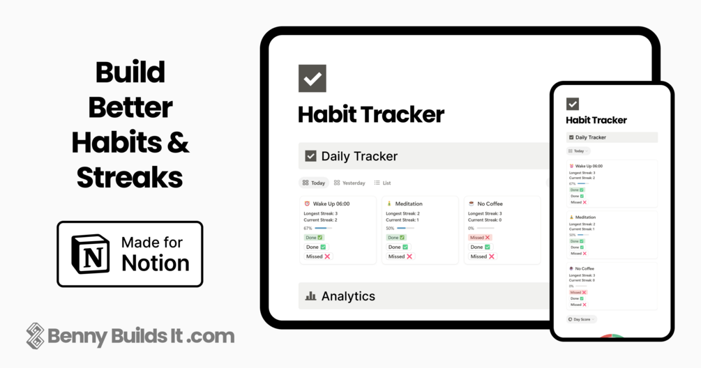 The integrated streak counter, visual data analytics, and a simple and flexible setup for both daily and non-daily habits set this template apart.